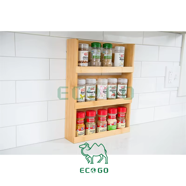 Organisateur de rangement de cuisine Porte-épices en bambou à 3 niveaux Porte-pots pour épices multiples pour épices ou fournitures d'artisanat Utilisation sur le comptoir