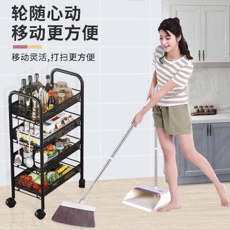 Étagère de rangement de cuisine multi-niveaux en acier carbone, chariot portable pour l'organisation des légumes et de la cuisine