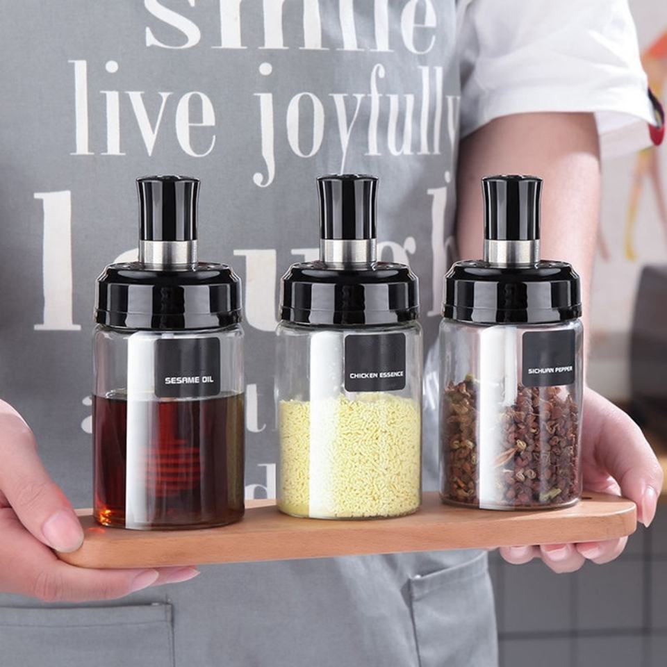 Accessoires de cuisine un ensemble pot à condiments contrôle salière pot à condiments en verre pot à huile cuillère couvercle condiment alimentaire poivrière