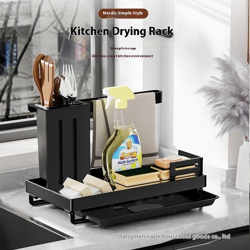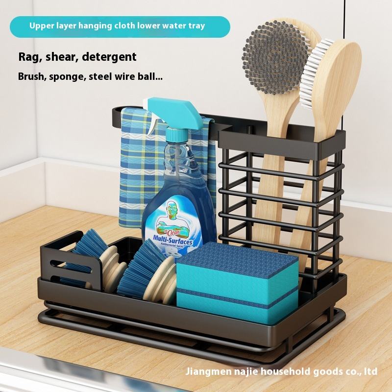 Étagère de rangement suspendue pour linge de vaisselle avec brosse éponge et égouttoir à serviettes pour Amazon