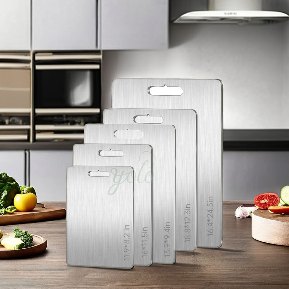 Cuisine Épais Bloc À Découper En Acier Inoxydable Petite Taille Couleur 3 Pack 100pur Titane Planche À Découper Ensemble avec Poignée Couteau 34x23cm