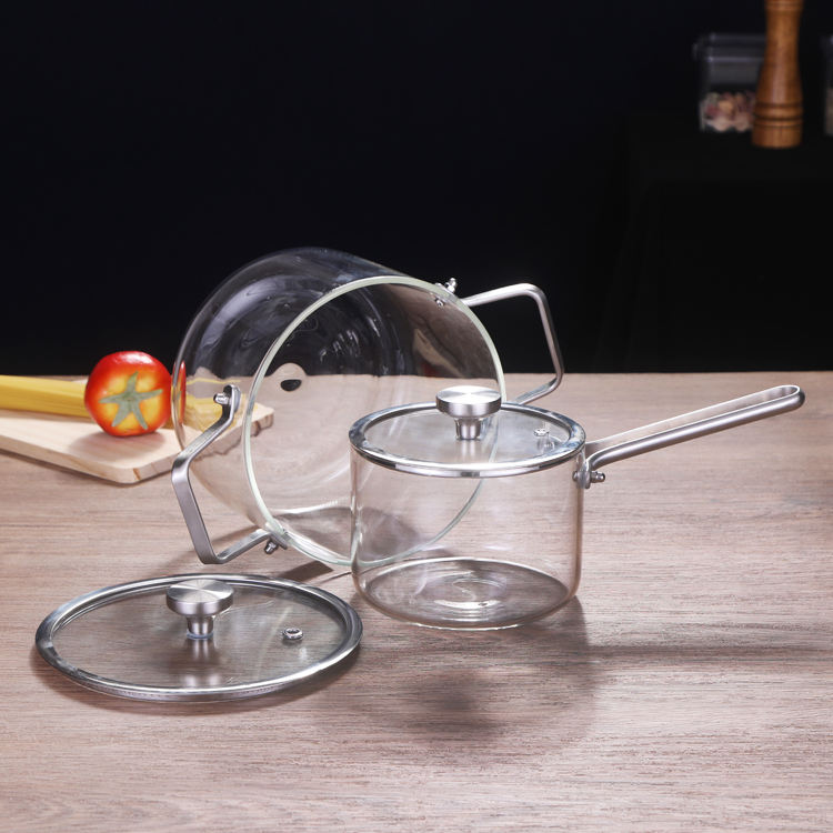 Marmite de cuisine en verre transparent Batterie de cuisine en verre à haute teneur en borosilicate