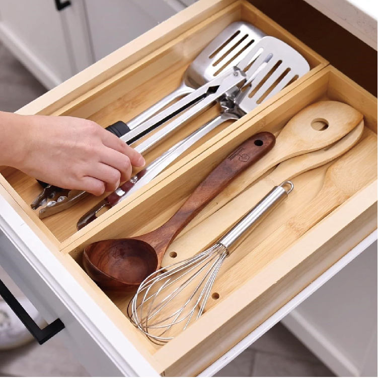Organisateur de tiroir pour ustensiles de cuisine, organisateur de couverts en bambou, plateaux de rangement pour tiroir de salle de bain