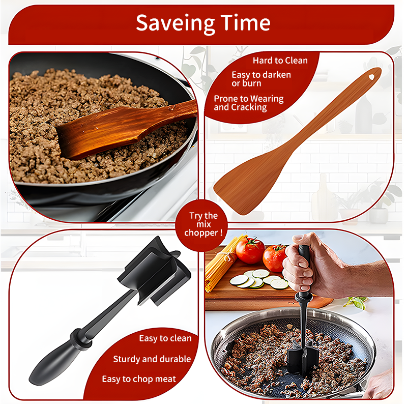 Ustensiles de cuisine résistants à la chaleur, outils pour hamburgers, hachoir à viande en nylon antiadhésif, écrase-viande pour salade de pommes de terre, tomates et viande