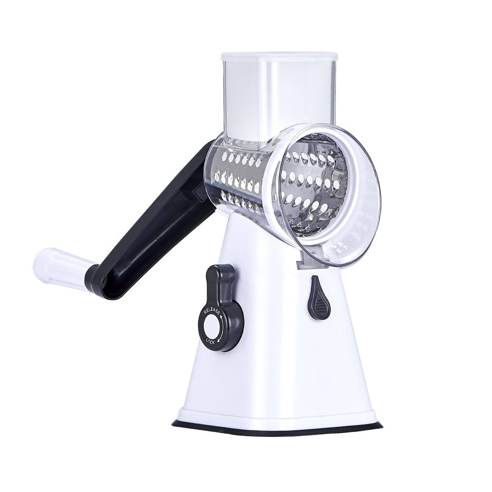 Mandoline ronde pour légumes, pommes de terre, noix, trancheuse, râpe, 3 lames interchangeables, râpe à fromage rotative avec poignée