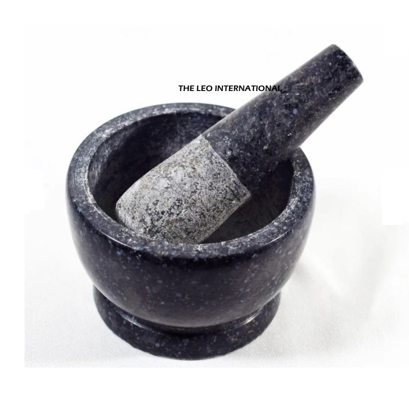 Ensemble de mortier et de pilon en pierre noire pour la cuisine, ustensiles de cuisine, épices et herbes.