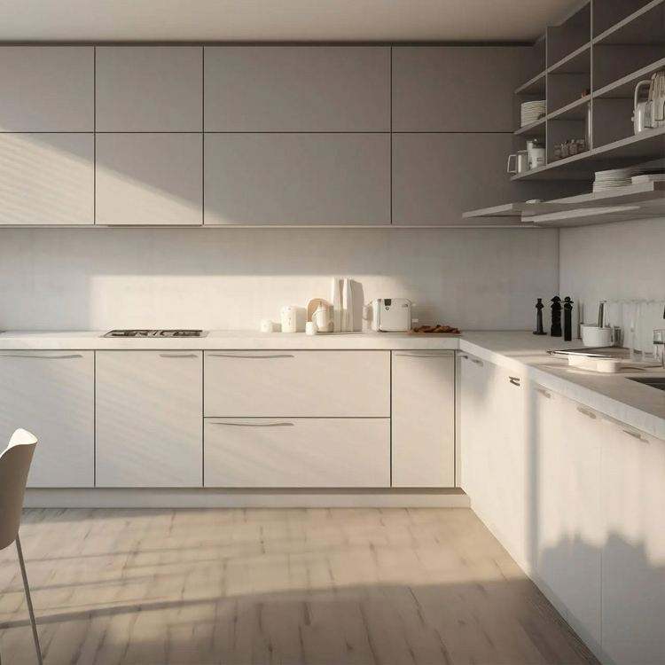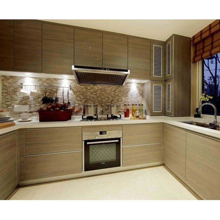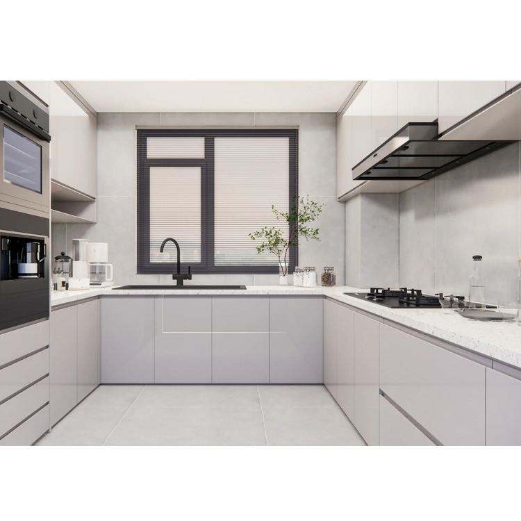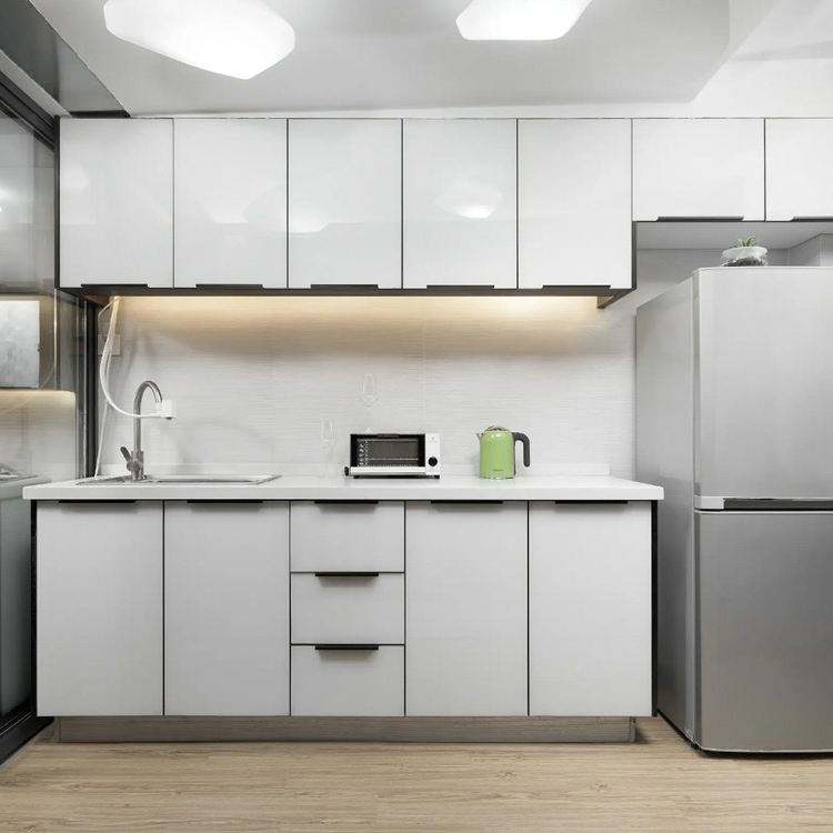 Cuisine et salle de bain Armoires de cuisine brillantes en stratifié métallique au design moderne fabriquées en Chine