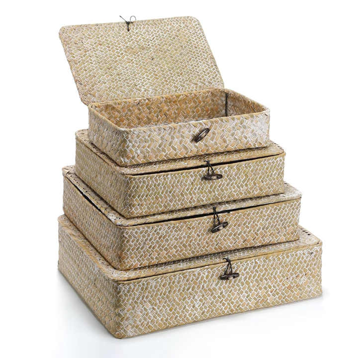Boîtes de rangement en paille de mer pour cuisine et salle de bain, boîtes en raphia de mer fabriquées à la main