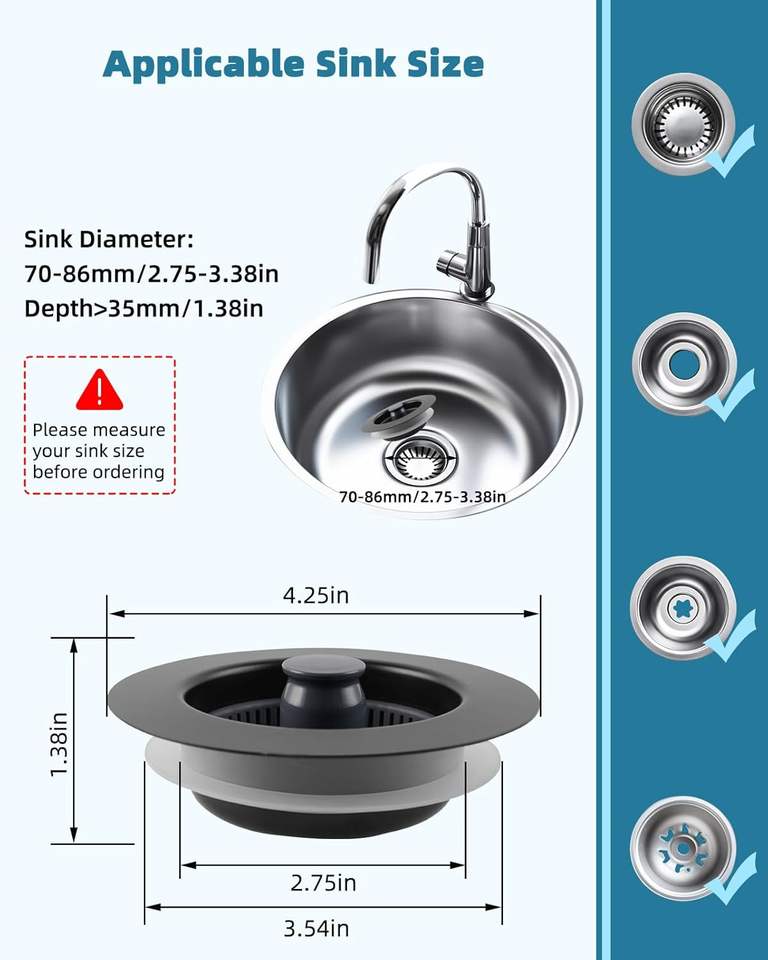 Kitchen sink drain filter plug set matte black stainless steel pop-up sink plug US standard 3-1/2 inch anti-clogging
