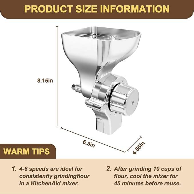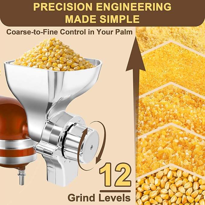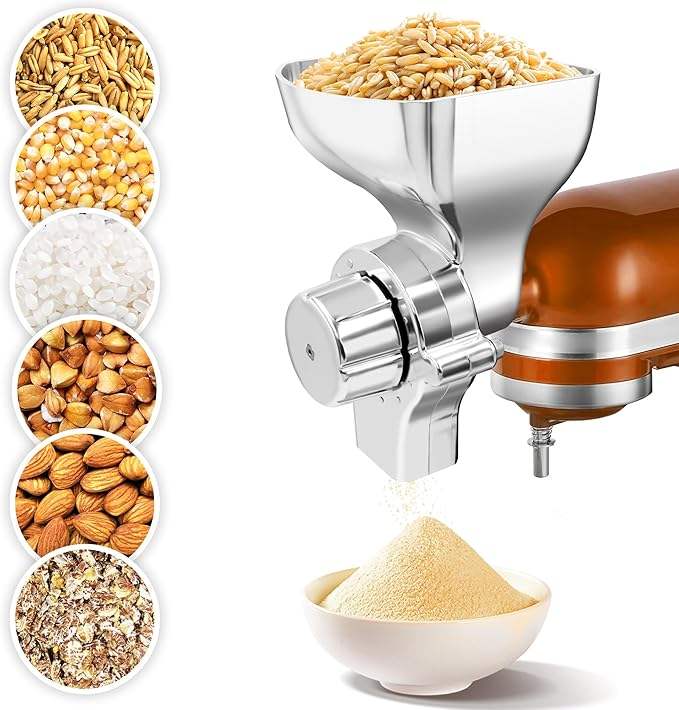 KitchenAid Accessoire pour batteur sur socle Moulin à grains en métal pour broyer les grains secs non gras Grains de café Avoine Autres céréales Aide de cuisine