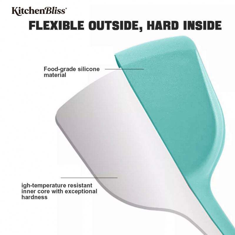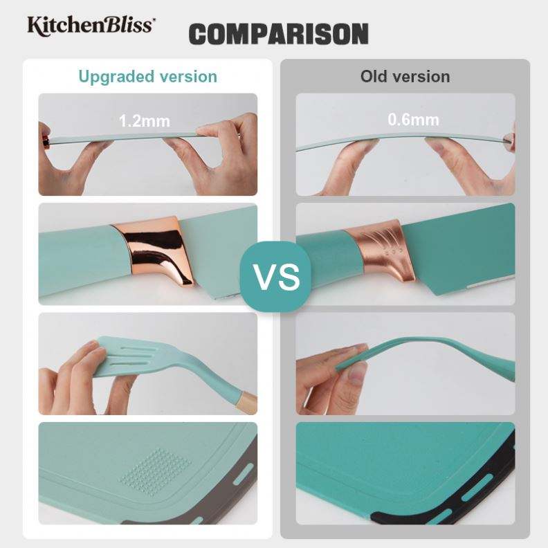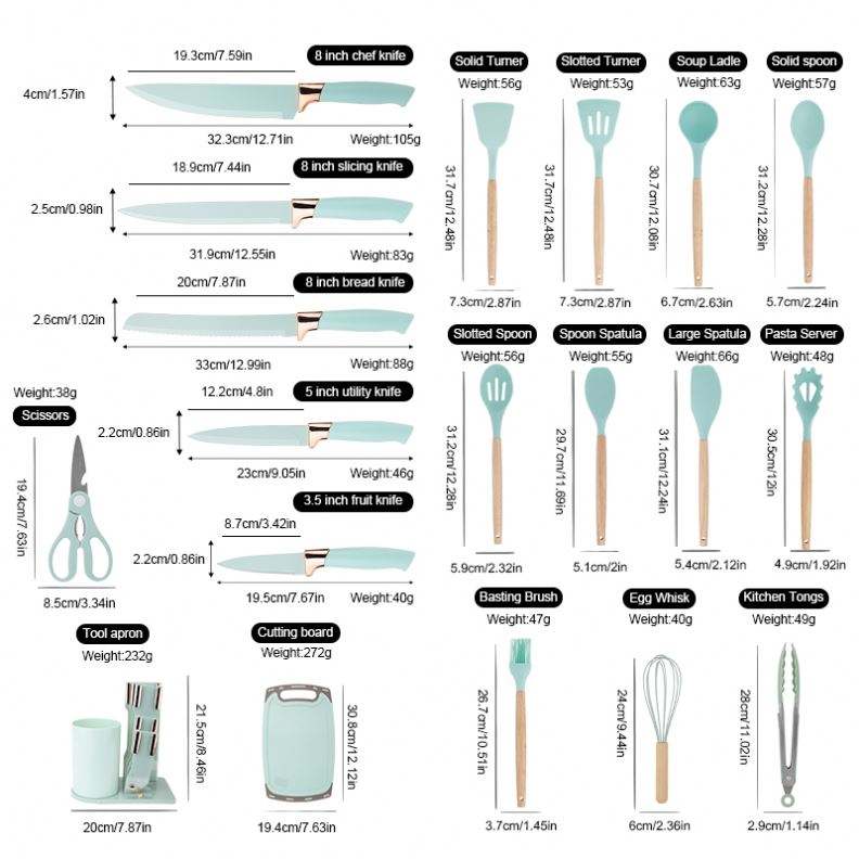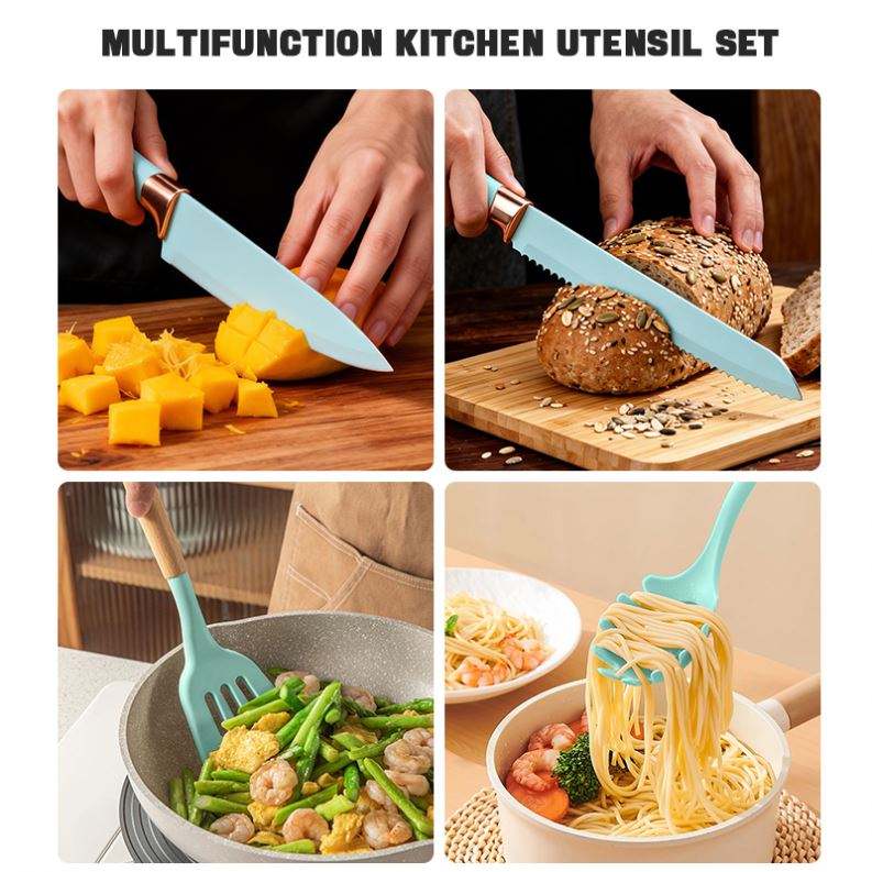 Ensemble d'ustensiles de cuisine Kitchenbliss 19 pièces avec manches en bois, ustensiles de cuisine en silicone, ensemble de couteaux avec planche à découper et boîte de rangement