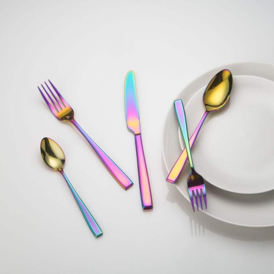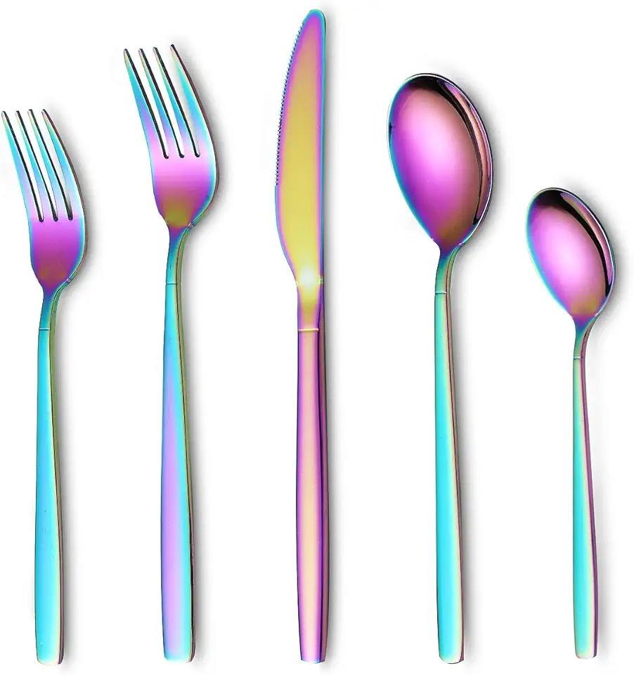 Ustensiles de cuisine Ensemble de couverts Design de finition Acier inoxydable Design entièrement métallique Outils de couverts arc-en-ciel Couverts brillants Ensemble de couverts