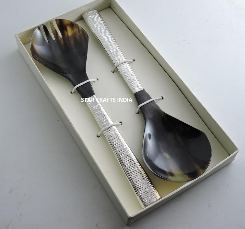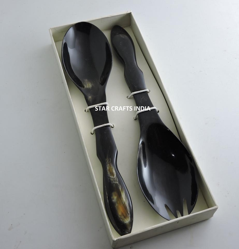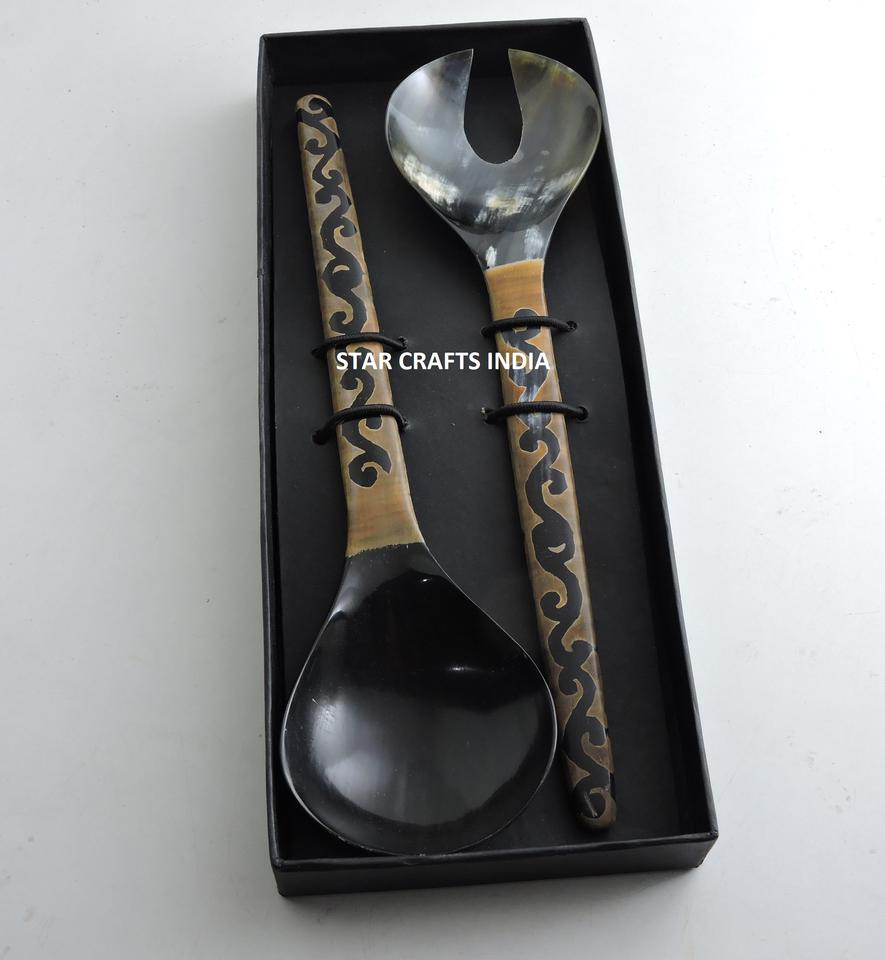 Ustensiles de cuisine Corne Salade Couverts Couverts Ensemble Salade Serveur Avec Manche En Os Haute Qualité Corne De Buffle Ustensiles De Cuisine Couverts