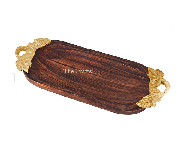 Kitchenware Serving Food Tray In Wooden Brown Color Serving Tray With Aluminium Handles At Cheap Prices