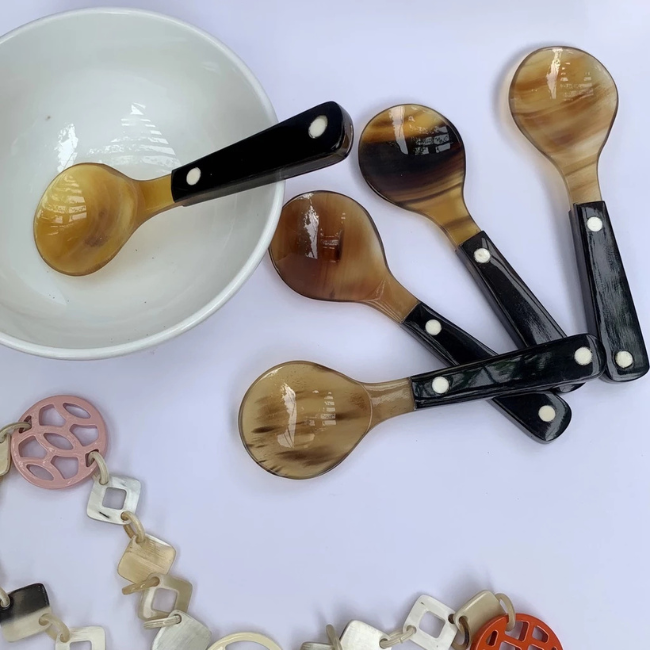 Ustensiles de cuisine Petite cuillère en corne de buffle pour servir les aliments et la décoration de Lotus bleu
