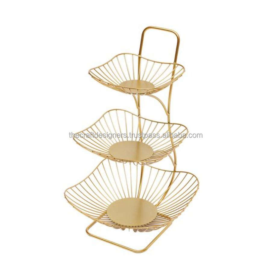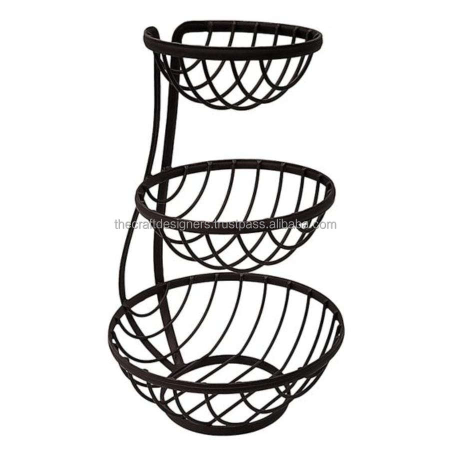 Panier de rangement pour ustensiles de cuisine Panier à fruits en métal enduit de noir à 3 niveaux de hauteur Panier de rangement personnalisé fabriqué en Inde