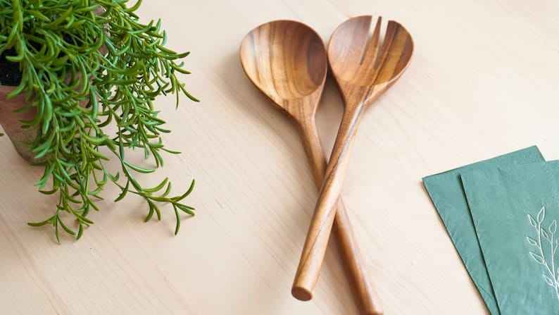 Ustensiles de cuisine ensemble de cuillères en bois serveur de salade outils de mélange spatule et fourchette pour la maison et l'hôtel ensemble de cuillères de cuisine