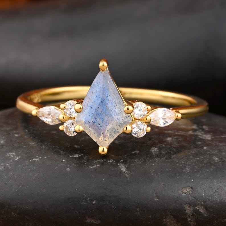 Bague coupe cerf-volant en argent sterling 925 massif plaqué or 18 carats fiançailles mariage cadeau de noël bijoux fins Labradorite & Moissanite