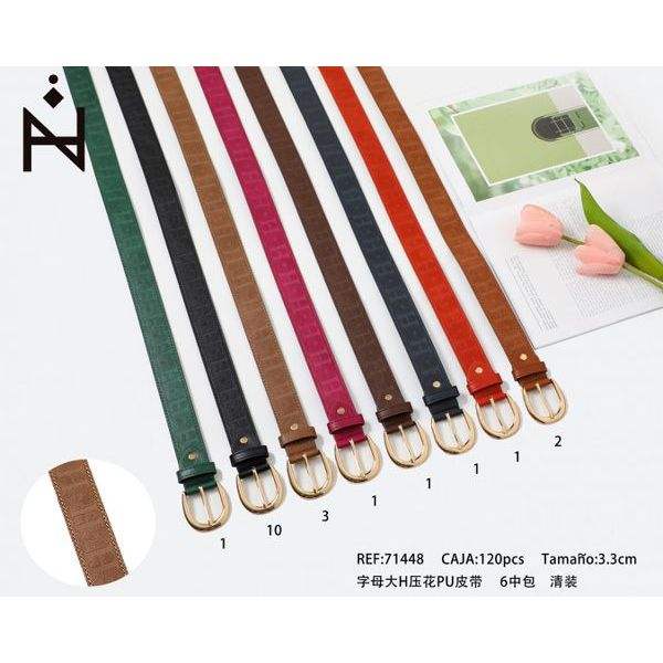 Ceinture Klara en PU avec lettre H en relief, 3,3 cm, boucle en cuivre, pour femme, style décontracté