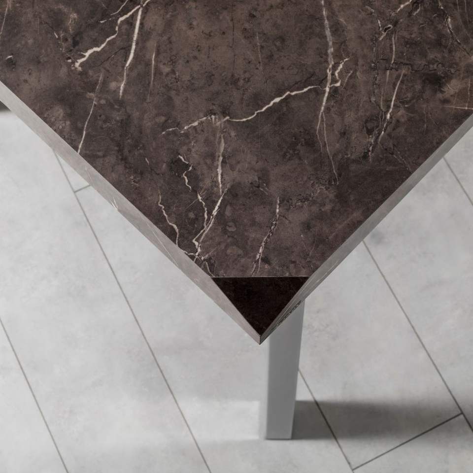 Ensemble de table à manger moderne Klas, 6 pièces, marbre, dossier pliable, acier inoxydable brun argenté, meubles