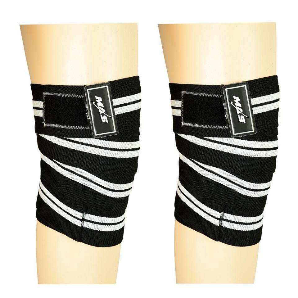 Enveloppes de genou de 39 pouces (paire) avec sangles pour squats haltérophilie Powerlifting Leg Press Cross Training Flexible Striped Pattern