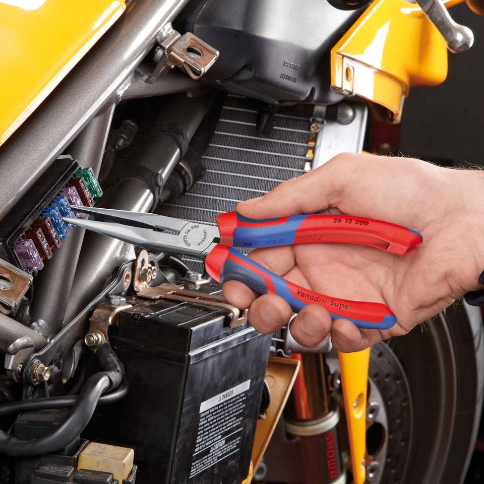 Pince à mécanicien Knipex 6 pouces en acier au chrome vanadium de qualité industrielle avec bec demi-rond et coupe-fil latéral, modèle 26 12 200