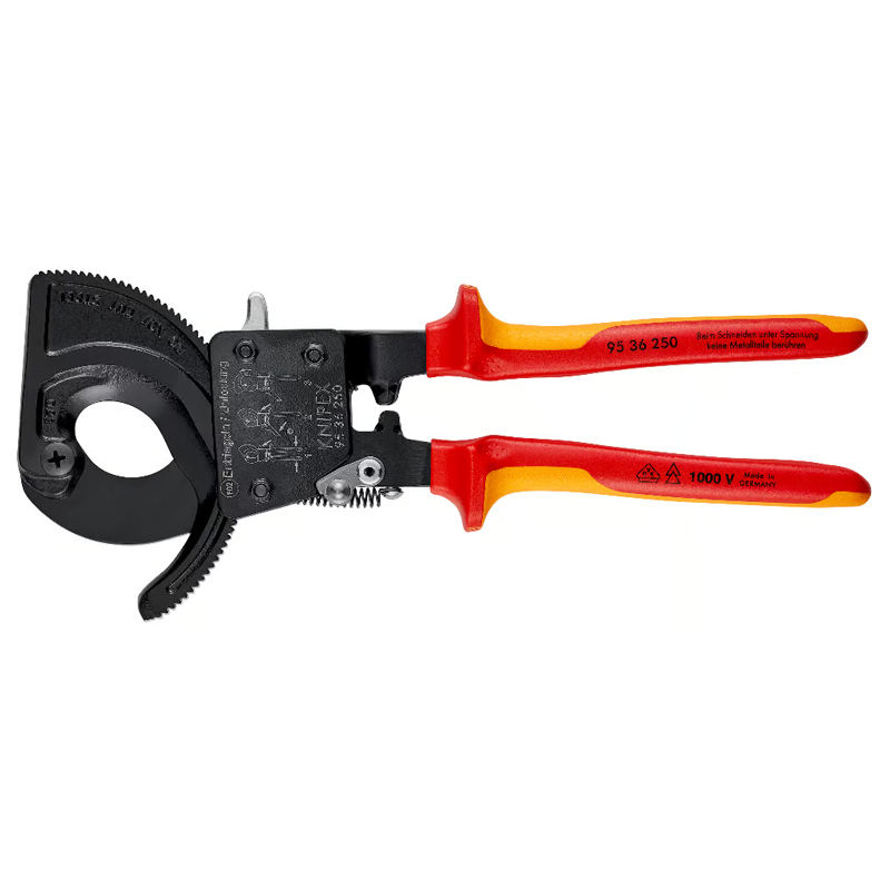 Coupe-câbles à pignon et crémaillère à cliquet Knipex avec poignée isolée, 250 mm