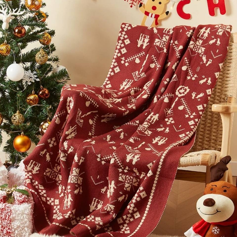Jacquard Knitted Polyester Sofa Cover Warm Casual Single Nap Blanket Skin-Friendly Machine Washable Festival Gift Decorative