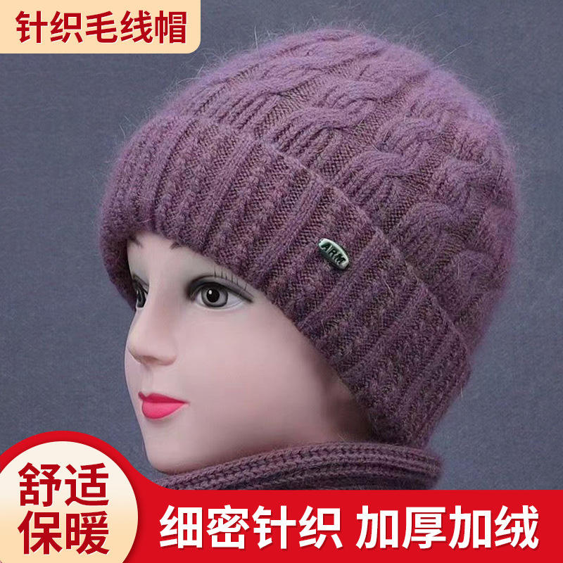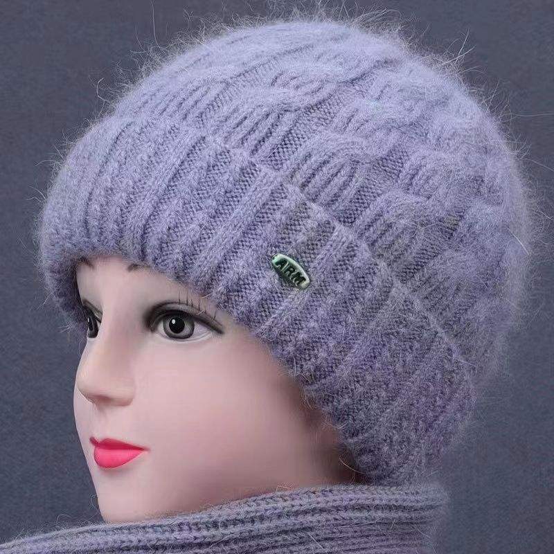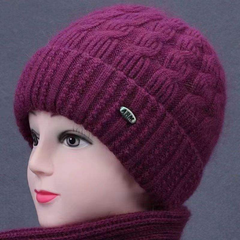 Ensemble de chapeaux tricotés pour femmes, chapeau chaud en laine avec écharpe, circonférence de la tête 54-56cm, Style uni, pour personnes âgées d'âge moyen, automne et hiver