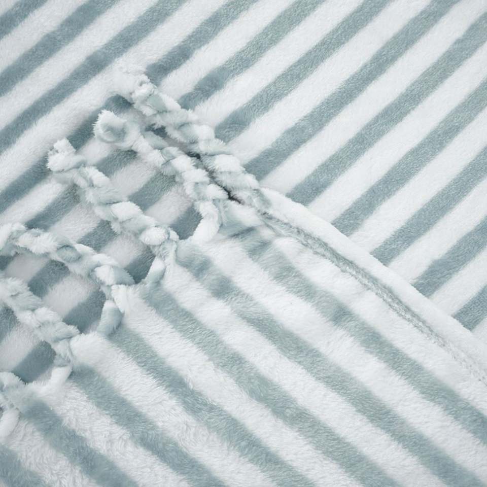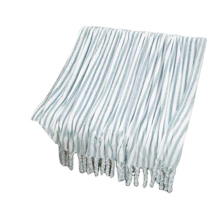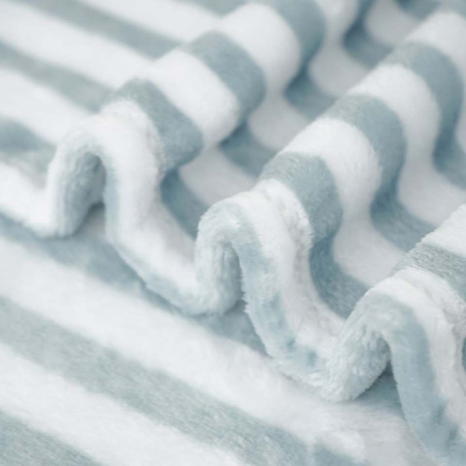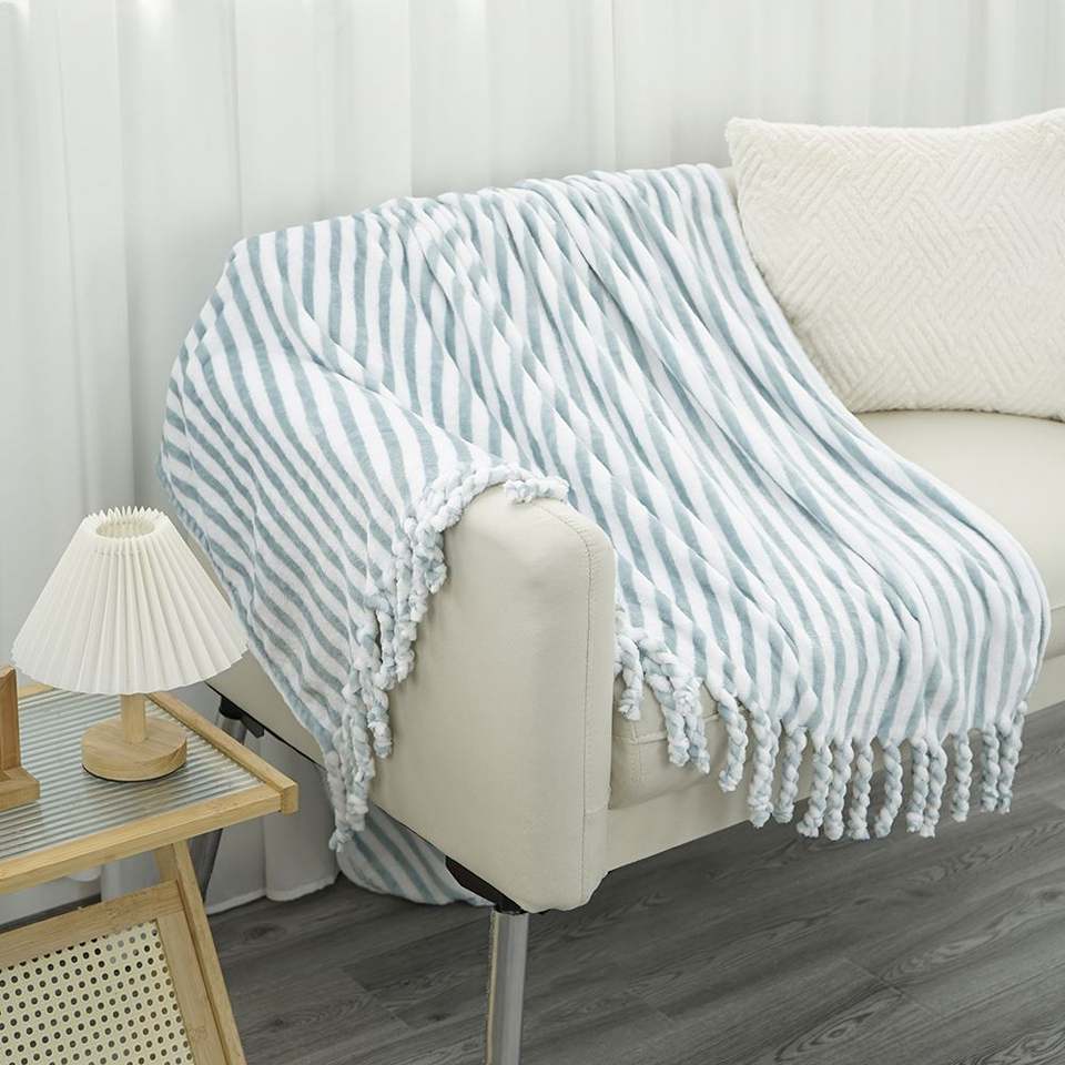 Tricoté Moderne 100% Polyester Polaire Jeter Couverture Super Doux Rayé Léger Fuzzy Confortable pour Toutes Les Saisons Bleu Clair