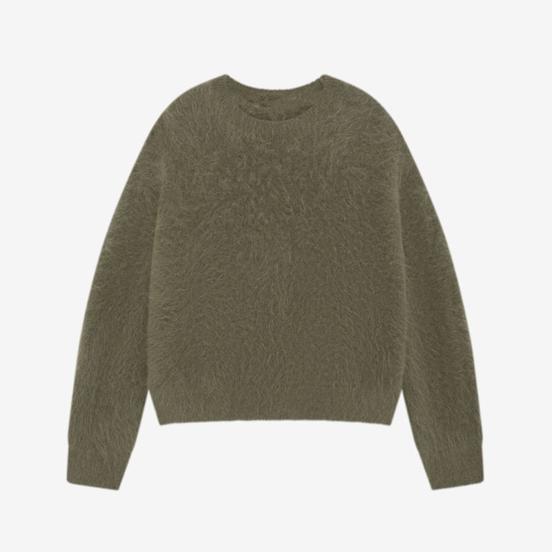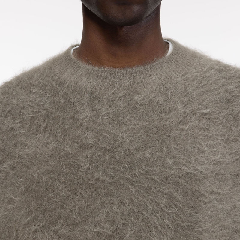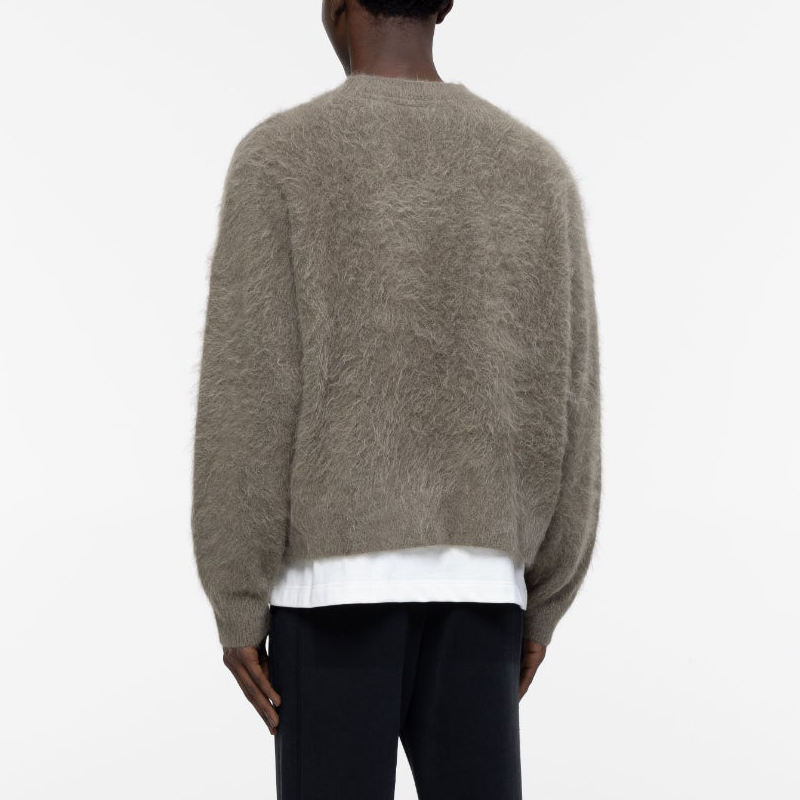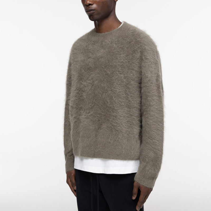 Fabricant de tricots Design personnalisé Logo Épaules tombantes Fluzzy Alpaga Moelleux Brossé Tricoté Pull Hommes