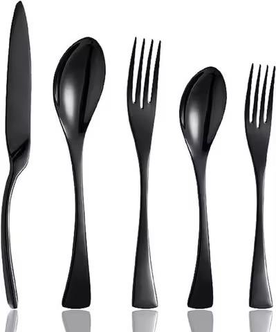 Ensemble de couverts en acier inoxydable noir avec revêtement PVD, design noué, finition polie miroir