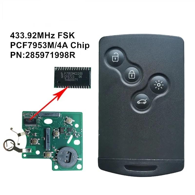 Clés de remplacement intelligentes pour véhicules Koleos 433 MHz, chipset 4A PCF7953M, fabricant de clés de voiture