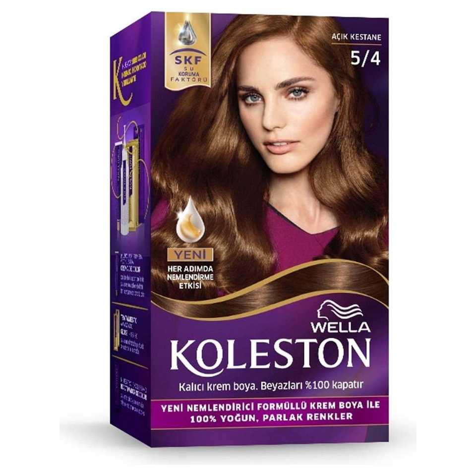 Koleston Hair Dye Kit 5/4 Light Chestnut Semi-Permanent Cream and Oil Form with Permanent Feature