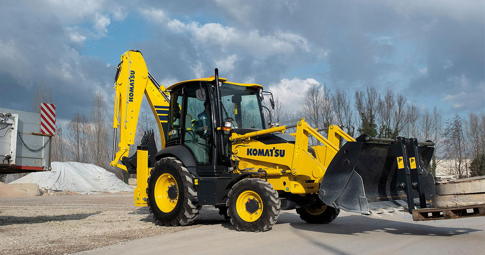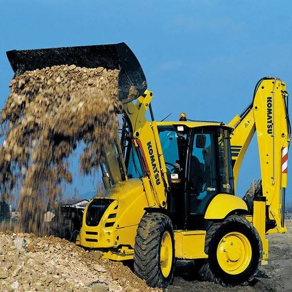 Chargeuse-pelleteuse polyvalente Komatsu avec moteur à couple élevé, accessoires avant et arrière, idéale pour l'excavation et la manutention de matériaux