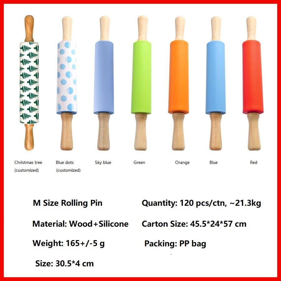 Konbo Outils de cuisine Rouleau à pâtisserie en silicone avec manche en bois-Plusieurs tailles et couleurs Passe au lave-vaisselle antiadhésif