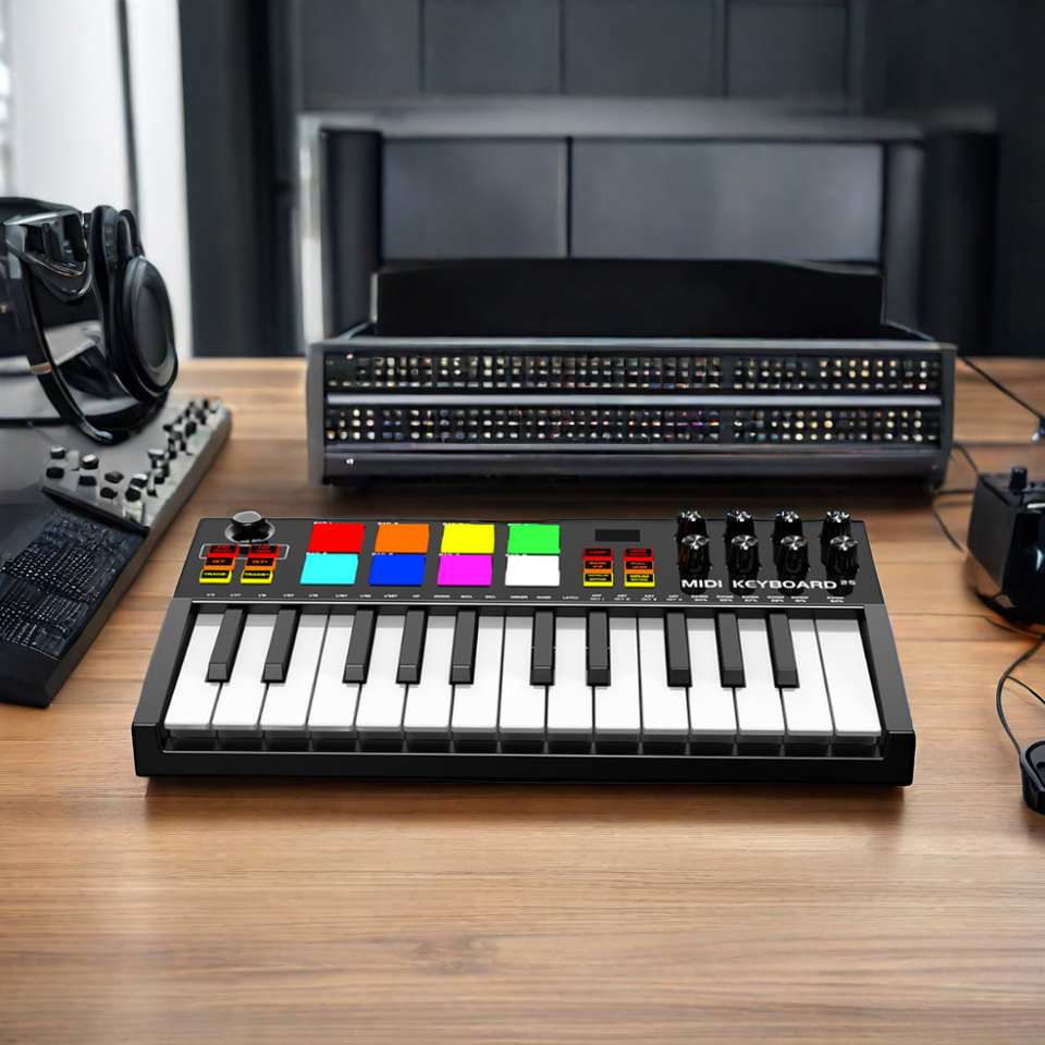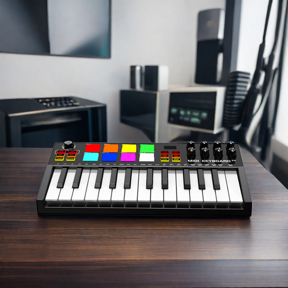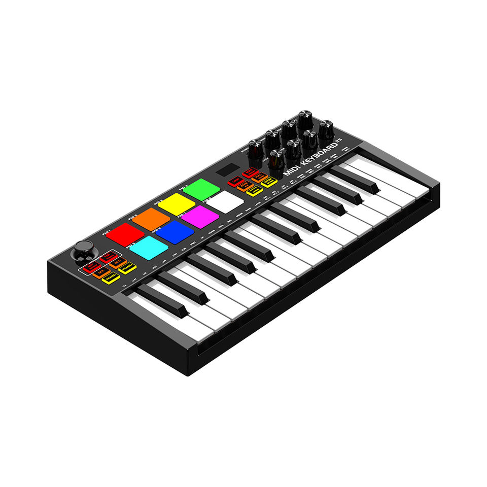 Clavier arrangeur MIDI professionnel Konix USB Mini, 25 touches, avec pads de batterie RGB et 8 boutons