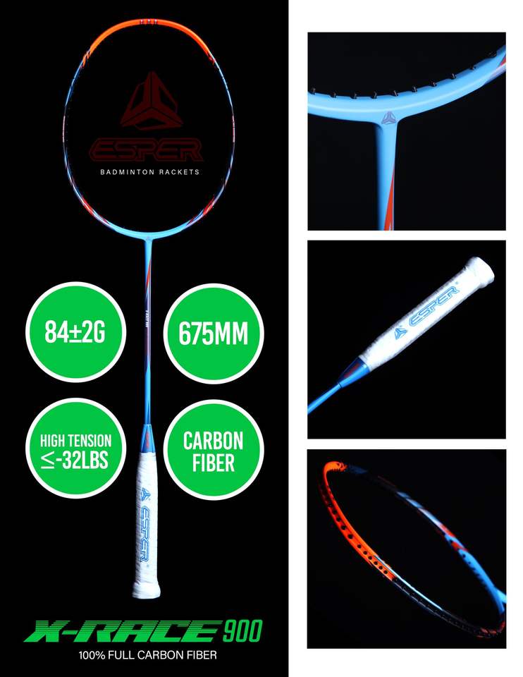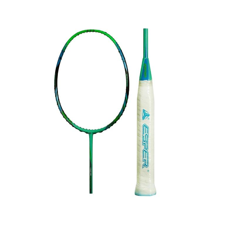Raquette de badminton Konmat Sports Esper 82g, entièrement en carbone, manche en bois, tension de 30 LBS, cordes en fibre de graphite, fabriquée en poids 4U