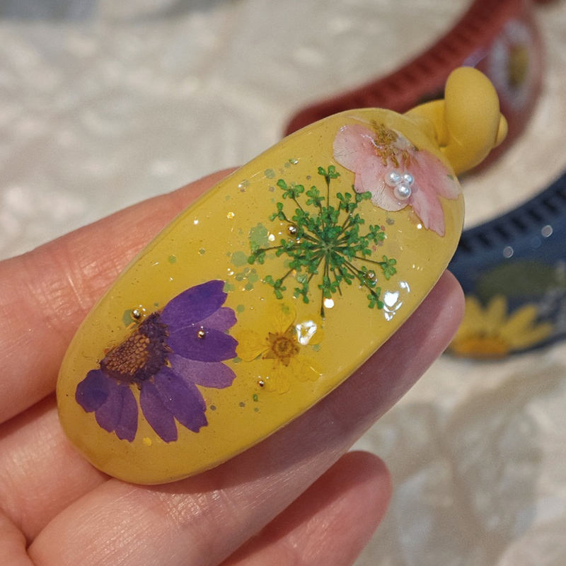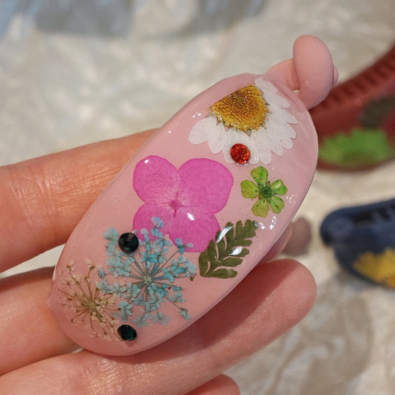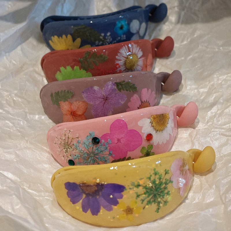 Corée Creative Résine Pince À Cheveux Vraie Fleur Séchée Petite Banane Pince À Cheveux Femmes Accessoires