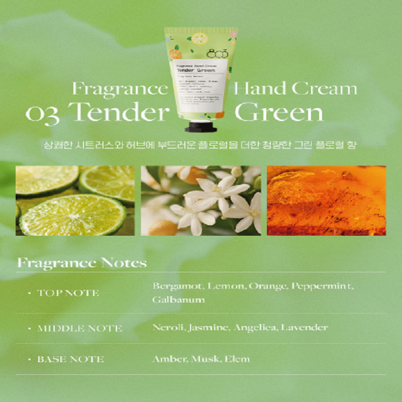 Korean Hyaluronic Acid Hand Cream-Tender Green Scent for Women Adults All Skin Types Tube Packaging