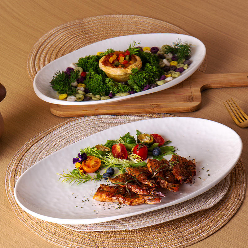 Plat de service coréen et japonais au design unique pour mariage, Vajila Plato, motif blanc en relief, céramique, assiette à dîner irrégulière