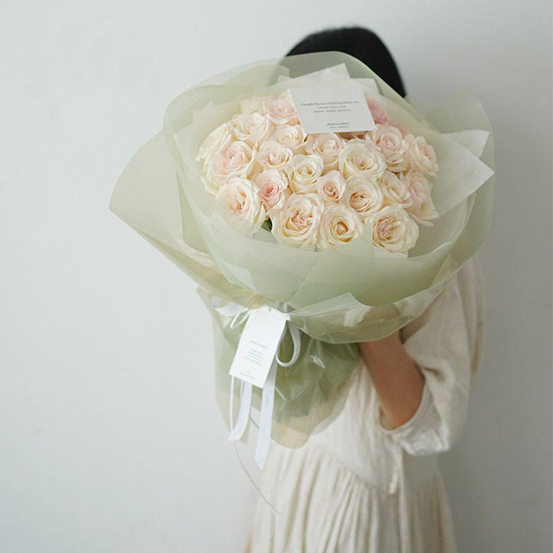 Bouquet de fleurs en fil doux et léger, visage de brume coréenne, emballage en gaze doublé de matériel de fleuriste en gaze