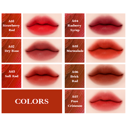 Rouge à lèvres coréen Teinte de velours sans cruauté Pigment élevé Finition mate longue durée Application lisse Air Fit vente en gros