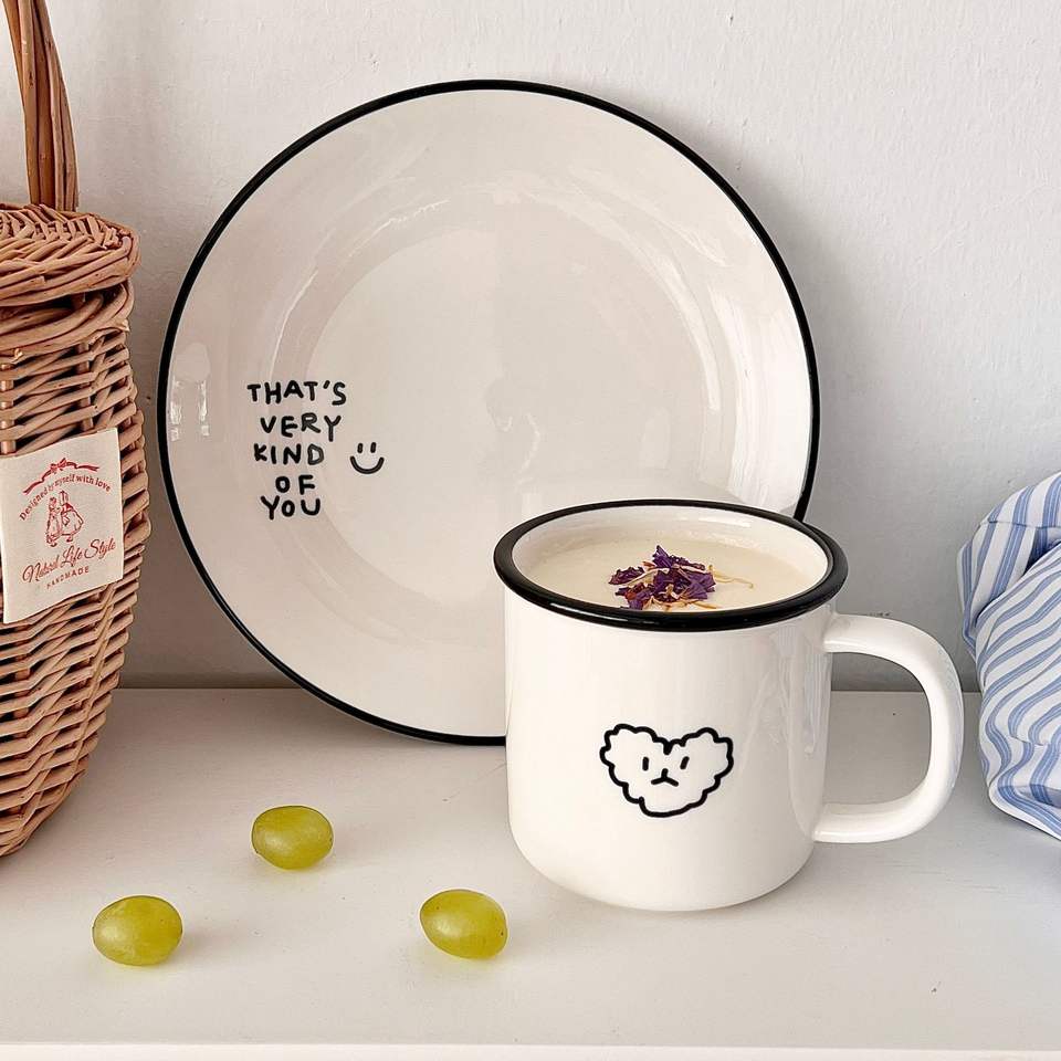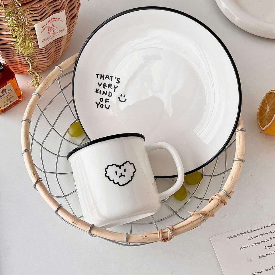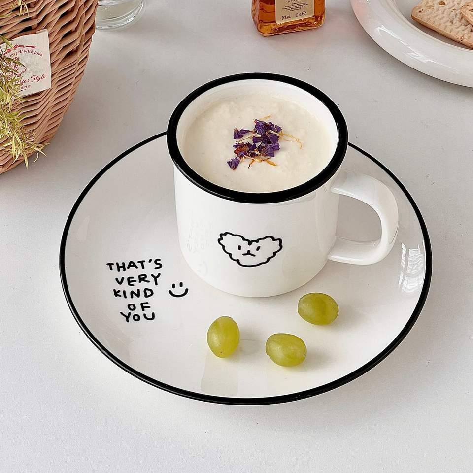 Korean Style Black Rimmed Coffee Mug Minimalist Ceramic Mug and Plate Breakfast Milk Cup