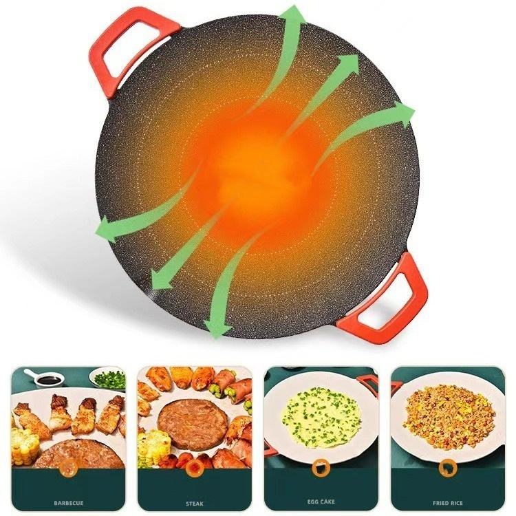 Plateau de cuisson électrique de style coréen, gril de barbecue multifonctionnel circulaire en pierre de riz, plateau de cuisson antiadhésif de ménage