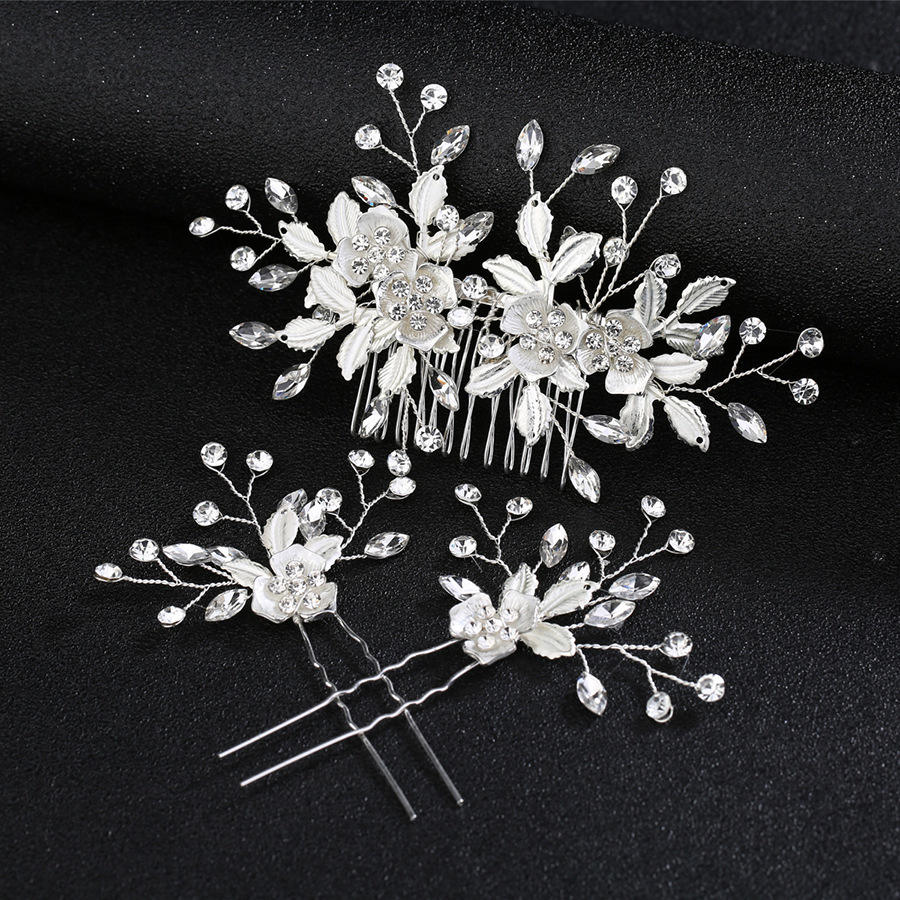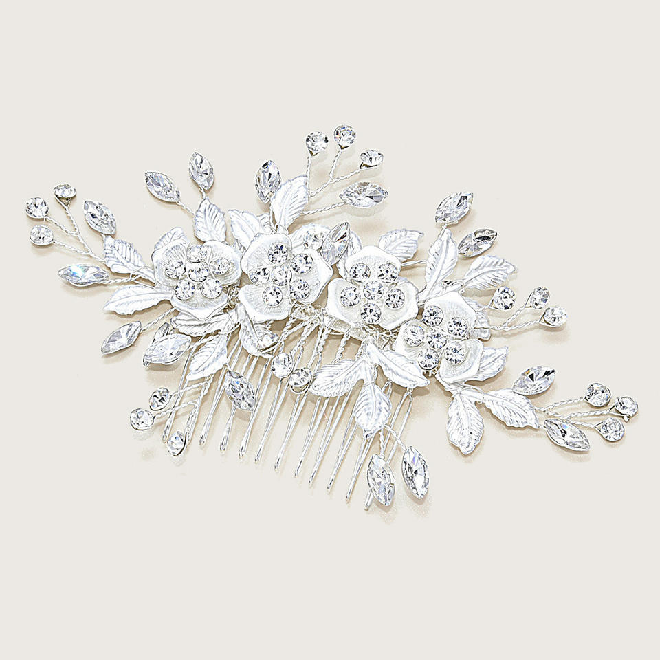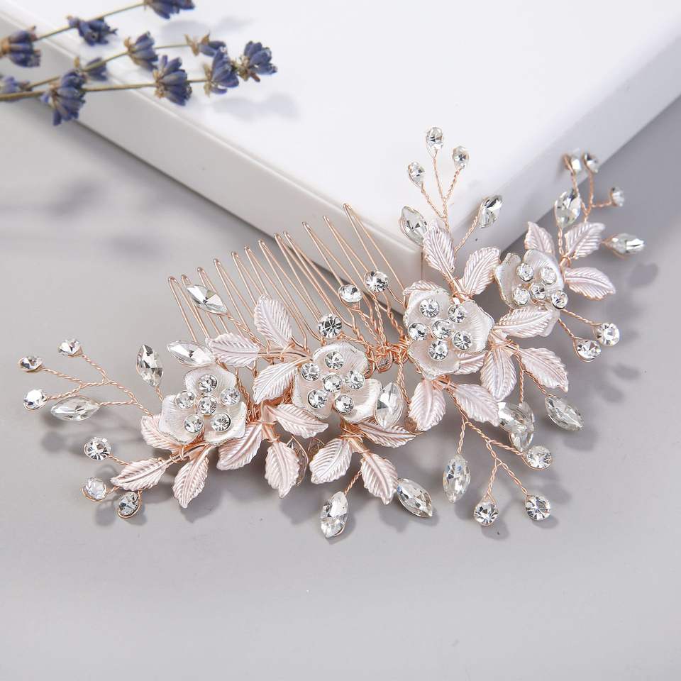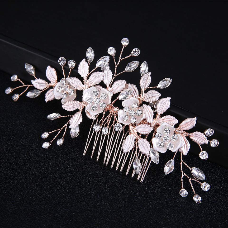Accessoires de cheveux de mariée de style coréen, exquis, avec fleurs et feuilles, peigne à cheveux en forme de rose, design assorti