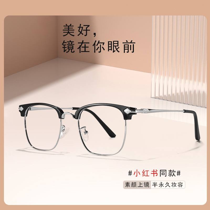 Lunettes optiques anti-lumière bleue pour hommes, style coréen, demi-cerclées, monture sourcil, verres PC, protection contre la lumière bleue, taille moyenne