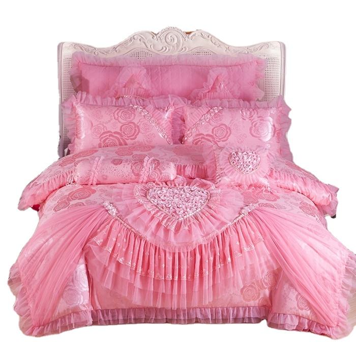 Jacquard dentelle princesse rose nuptiale ensemble de literie de mariage