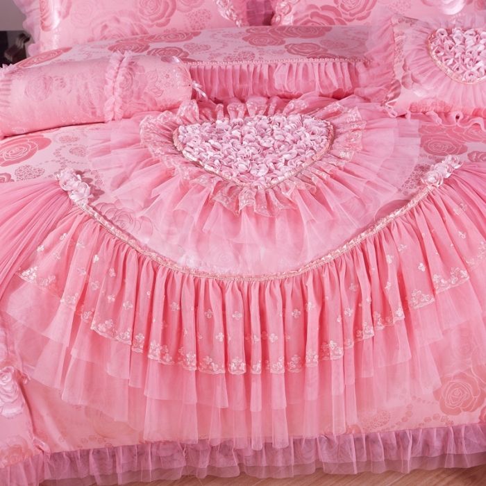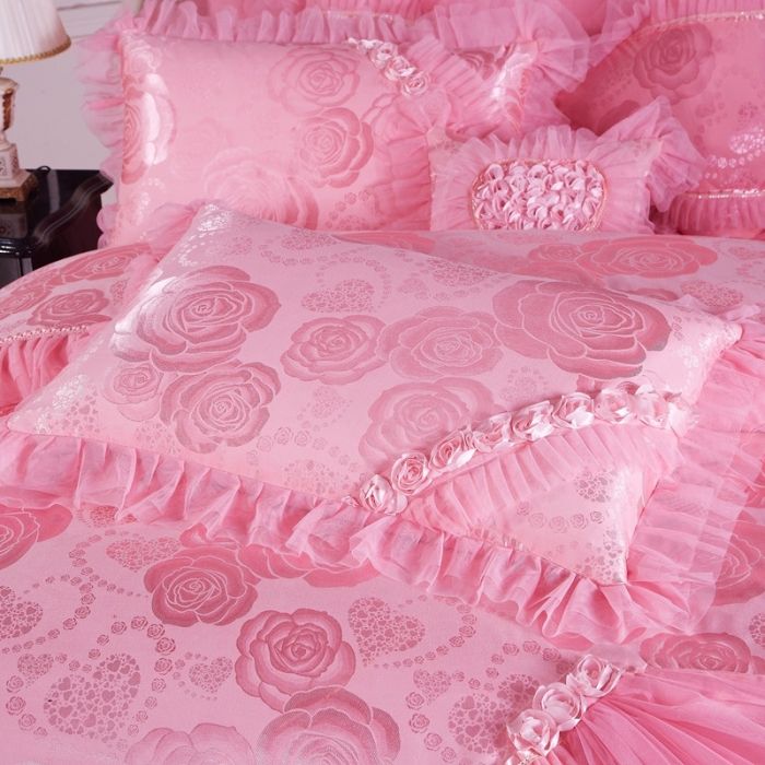Nom du produit:Jacquard dentelle princesse rose nuptiale ensemble de literie de mariage