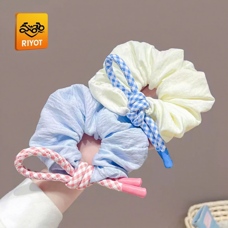 Accessoire de cheveux élastique coloré avec nœud papillon à carreaux de style coréen pour chignon de femme queue de cheval basse nouveau modèle cravate pour cheveux